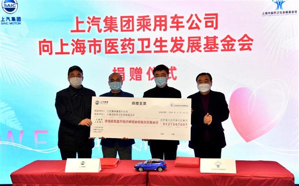 作为上海市医药卫生行业唯一的基金会,上海市医药卫生发展基金会在疫情爆发后一直支持上海援鄂医疗队。基于此,上汽乘用车党委和工会将1,215,476.97元善款捐赠给上海市医药卫生发展基金会,为援鄂英雄送去关爱。另外,上汽乘用车还将为返沪援鄂医疗队提供出行援助,安排车辆接送战疫英雄从隔离点前往医院检查,并护送他们平安回家。