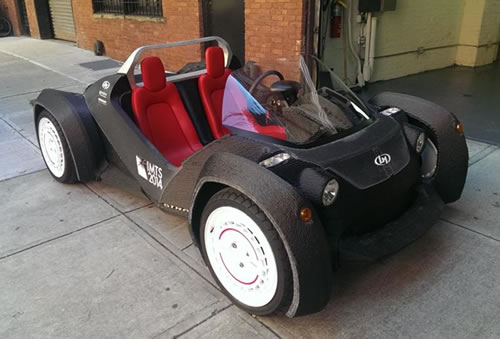 在上个月中旬芝加哥国际制造业技术展上,展出了一辆3D打印汽车,这辆由美国亚利桑那州的local Motors公司创造的3D打印汽车,是一辆双门双座敞篷小车,名为Strati。它是一款电动车,后轮驱动。根据官方消息,它的最高速度为80Km/h,搭载了6.1kWh电池,续航里程大约为100Km(数据来自纽约日报试驾文章)。