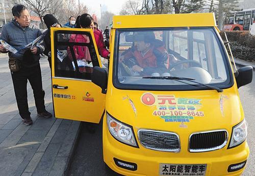 12月23日,在山西太原省城迎泽大街,为了推广新能源技术,提倡低碳环保,某太阳能电动车生产企业拿出5辆四轮电动车免费供行人乘坐。这种太阳能电动车充满电后能行驶100公里左右,可供3到6人乘坐。到本月25日,这5辆电动车将在省城大南门、柳巷商业区一带供人们免费搭乘。