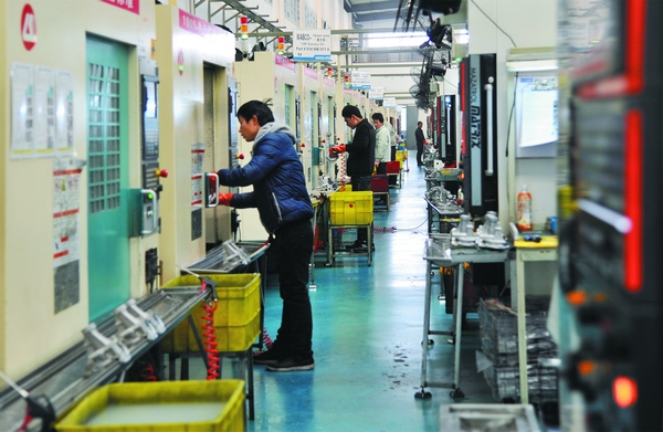 “我们去年和美国特斯拉公司签订了战略合作伙伴关系,目前正在进行特斯拉车门等关键零部件的研发。”公司管理部经理王俊有介绍。在生产车间,大型压铸设备与精细模具成排排列,在工作人员操控下,多个机器人手臂正在井然有序地进行压铸等工序。在如此高端流水线上生产的产品具有“轻、耐腐蚀、安全性高”的优势,王俊有介绍,与传统的焊接或冲压成型相比,雄邦压铸采用一次铸压成型工艺,“一次铸压有高强度、轻量化的效果,也是国际汽车行业发展的方向和趋势。”据了解,新能源汽车关键零部件今年1月份试生产,将于4、5月份正式投产,此条生产线未来将给公司带来上亿元的销售额。