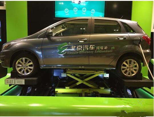 电动车停在换电站后,工作人员操控按钮,电动车底盘下方的升降机随即升起,将位于车底部的旧电池取下并送入后台,接着运出一块新电池并安装好,整个过程大约只需3分钟。
