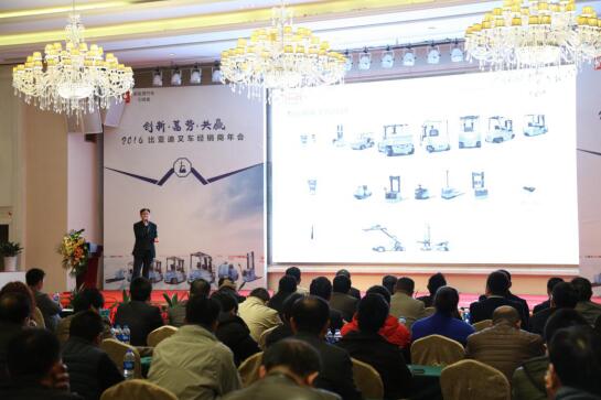 2016年3月14日,以“创新·蓄势·共赢”为主题的2016比亚迪叉车经销商年会在深圳坪山隆重召开,比亚迪相关领导以及来自全国经销商汇聚一堂,共同就2015年叉车市场概况、比亚迪叉车产品规划,及201