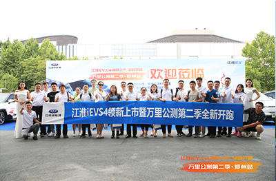 江淮新能源万里公测第二季精彩继续。6月12日,江淮新能源iEVS4领新上市暨万里公测第二季郑州站隆重举行。来自全国各地的媒体记者和江淮新能源车主代表共百余人出席此次活动。此前,江淮iEVS4车队从北京南下,途径天津、衡水、邯郸、安阳后顺利抵达郑州,全程800余公里。一路上,江淮新能源实时对外播报公测的最新动态,将参与公测的媒体与车主对于江淮iEVS4最真实的评价、以及江淮新能源倡导绿色低碳的出行理念传递给公众。