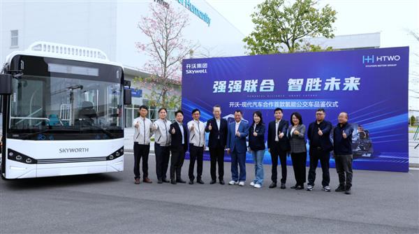 11月3日,开沃集团与现代汽车在现代汽车氢燃料电池系统(广州)有限公司(以下简称“HTWO广州“)举行双方合作开发的首款氢能公交车品鉴仪式。创维集团、开沃集团创始人黄宏生,开沃集团CEO、总经理诸萍,
