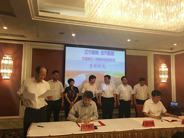 北汽集团新技术研究院与盘锦市大洼区人民政府在北京市举行无人驾驶汽车战略合作协议签约仪式,盘锦市市长高科和北汽集团党委常委、董事、北汽集团新技术研究院党委书记、院长周榕出席签约仪式,盘锦市大洼区区长陈林
