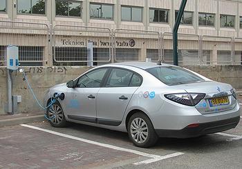 以色列特拉维夫市一辆电动汽车正在充电。