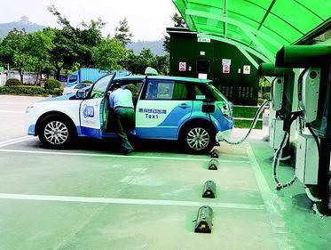 火车西站充电站建在火车西站广场一角,3排充电桩整齐地排列在一起。来充电的出租车司机将充电接口接到车上后,就三三两两去散步了。“一共建了40个充电桩,可以同时充40辆车。”比亚迪公司充电运营惠州地区经理吴学祥介绍,充电站是该公司投资建设的,投资金额200多万元。“现场有3个工作人员在管理,还准备在旁边建一个集装箱式休息室,配上空调和简单的娱乐设施供司机休息,月底就可建好。”吴学祥说,一辆汽车充电满额要1.5个小时,目前只对该公司的出租车司机免费开放。