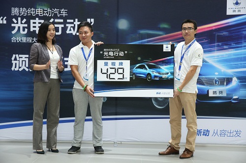 在DENZA滕势电动汽车发起的“光电行动”里程挑战比赛中,来自深圳的两位参赛者凭借出色的驾驶技术,共同创造了国产纯电动汽车最大行驶里程的新纪录——429.5公里!