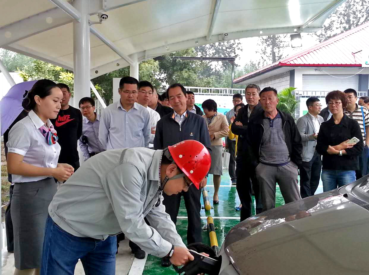 图2 冀北电力2015年电动汽车快充网络建设现场推进会现场。