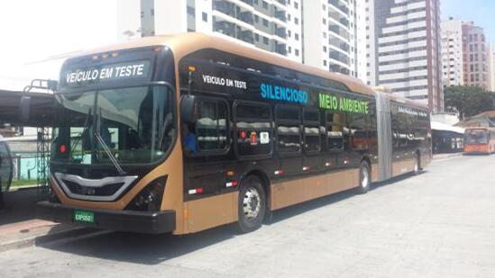 在库里蒂巴市试运行的比亚迪铰链式纯电动大巴