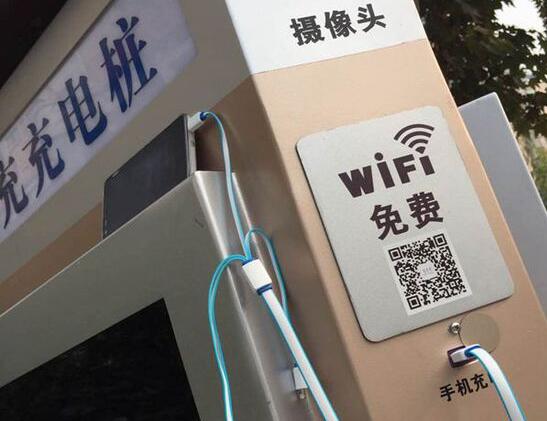 同时,记者还看到一串接口,插在手机上也能充电,用微信扫下二维码之后,这里的无线WIFI就接通了,上网也很方便。