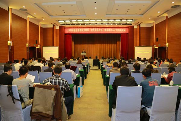 10月30日,2015年联合国教科文组织“全民信息计划”新能源汽车产业创新培训会在苏州会议中心举行。联合国教科文组织专家Kwame Boafo,科技部中国科技信息研究所戴国强所长,中国汽车技术研究中心吴志新副主任,中科院电工研究所王丽芳研究员,清华大学王贺武教授,国家科技信息资源综合利用与公共服务中心朱礼军博士,苏州市科技局党组成员、市科技服务中心赵玮芳主任,以及全市新能源汽车企业、研究机构等共计110人参加了本次培训会。