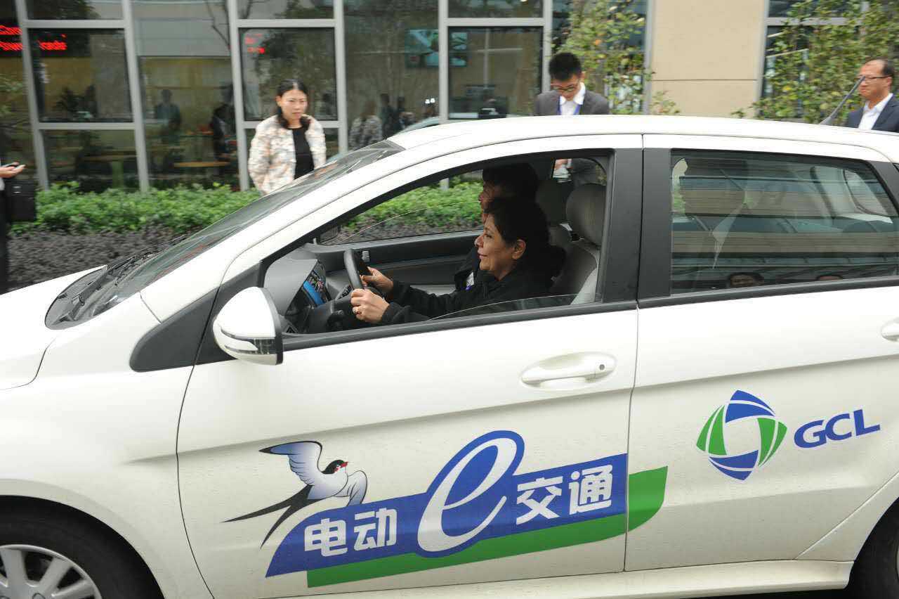 朱共山描绘的电动汽车分时租赁服务引起了阿赫塔尔博士的浓厚兴趣。参观协鑫能源中心时,阿赫塔尔博士驻足光伏发电车棚,还掏出手机不时拍照。当协鑫员工开着一辆“电动e交通”轿车停在阿赫塔尔博士面前时,她脱口而出:“This is my future car!”
