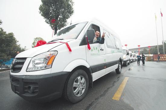 12月初,在长沙县江背镇的梅花汽车制造公司厂区,100辆白色的14座纯电动商务客车在飞扬的彩带中列队驶出厂区开往长沙市、北京和广州。这标志长沙自主汽车品牌的首批电动商务客车交付上市。