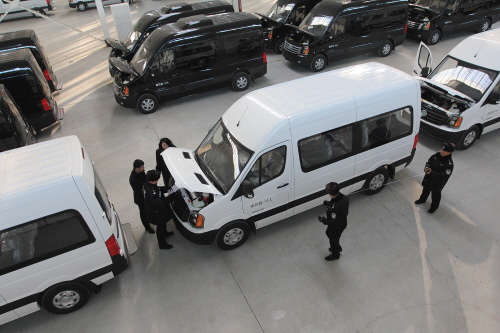 昨日,大连市交警支队车辆管理处民警冒着寒风来到辽宁瑞晨新能源汽车服务有限公司停车场,对新购买的500台黄海牌瑞途新能源客车,现场进行上牌前车辆查验、检测工作,为我市发展新能源汽车作出贡献。