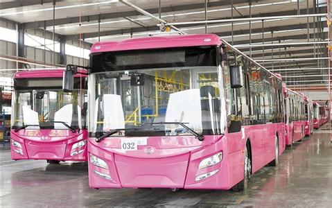 南宁源正全铝车身新能源汽车生产基地生产的一批公交车。