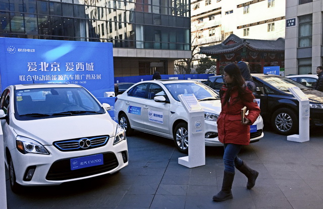 为推行绿色出行,为北京蓝天做贡献,北京市西城区与中国电动汽车跨界平台运营商联合电动携手,于今明两天举办新能源汽车知识普及展,5个品牌电动汽车的现场展示,让更多的人近距离了解了电动汽车。