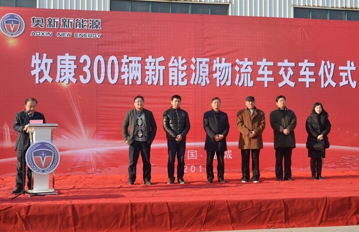 为了响应绿色末端物流配送体系 , 在邮政快递、电子商务末端物流等领域推广应用新能源纯电动物流车背景下,2016年1月15日“江苏奥新一苏州牧康3000辆物流车战略合作协议签署暨300辆交车仪式在江苏奥新公司举行。