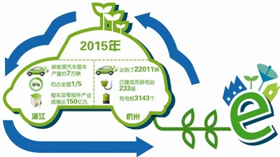 不可否认,浙江发展和推广力度始终走在全国前列。2015年,浙江新能源汽车整车产量约7万辆,约占全国五分之一,整车及零部件产业规模达150亿元。