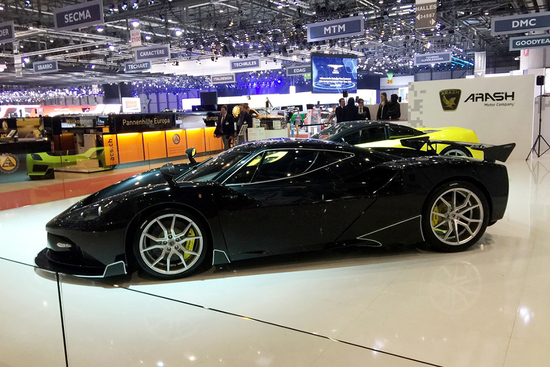 英国超级跑车制造商Arash在本届日内瓦车展上发布了新款的AF10超级跑车,新车大面积使用了碳纤维材质,预计售价在110万欧元左右。