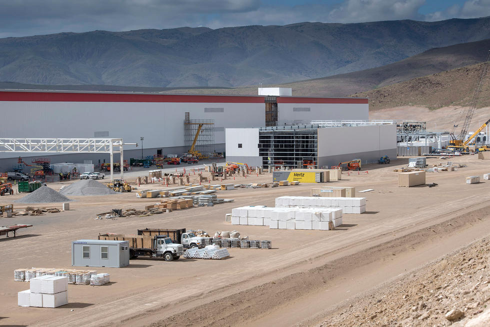 【放置在超级工厂选址上的建筑材料。这个地方将会建起一个新的部门用的厂房。】特斯拉称,超级工厂计划将电池成本减少至少30%,且有能力生产35十亿瓦特小时的电池和50十亿瓦特小时的电池组。(“Giga”是一个代表十亿的计量单位:1GWh相当于消费或生产10亿瓦特小时。)