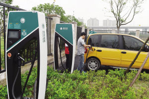 6月16日,在杭州市萧山区,国网公司投建的快速充电桩投入使用,国网杭州萧山钱江潮青年志愿者正指导电动汽车车主进行自助充电。为迎接G20峰会,国网杭州供电公司围绕G20峰会重要场馆、交通枢纽等开展充电桩布点,政企联动高效推进属地协调,计划于本月底完成460个G20峰会配套服务充电桩建设。据悉,充电桩接口是通用型的,充电电压符合直流充电国标,400伏到550伏直流电压自动识别,只要插上充电插头,充电桩就能自动检测并自动增降压。充电过程全自助,除了使用充电卡,还有刷二维码、微信及支付宝付款等多种充电支付方式。