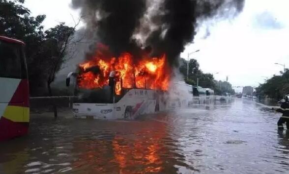 从6日晚上到7日清晨,南京持续暴雨,积水较深成“泽国”。据扬子晚报报道,7日上午,南京玄武区徐庄软件园内先后两辆泡在水里的大客车起火,大火迅速从尾部燃烧,车上人员迅速撤离。南京消防支队特勤二中队赶往现场处置。