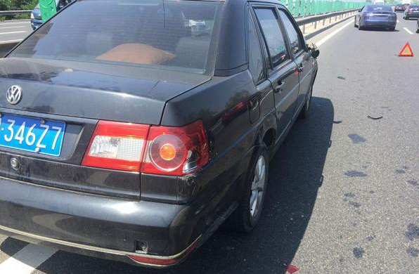特斯拉造成路侧停靠的桑塔纳损伤