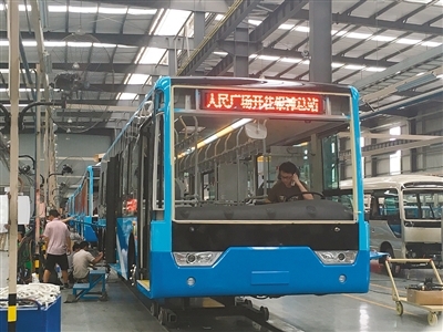 批中植新能源轮边驱动纯电动客车总装现场