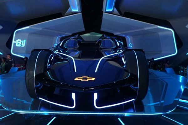 光梭定位于一款超级跑车,采用雪佛兰研制的新型光子材料打造,搭载主动电磁悬挂系统和声能推动系统,引擎由创喷气战机高能推进器为原型改造而成,行驶时会在车尾留下一道红色光轨。