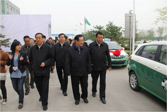 2012年4月19日,全国政协副主席、科技部部长万钢(右二)率队到北汽新能源进行调研