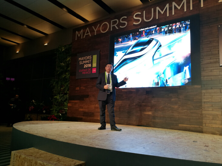 (墨西哥城,2016年12月1日)近日,全球百大城市市长齐聚墨西哥城,共谋城市发展良策。在大会上,比亚迪集团董事长兼总裁王传福先生分享了 “从治污到治堵”的城市交通解决方案,备受瞩目,特别是独创的“治堵”理念和领先的“云轨”产品,引发众多城市的强烈兴趣。在峰会期间,比亚迪还携手全球百大城市发出“为地球降温1℃”的倡议,并授予巴黎“全球城市领袖奖”,展示出强大的号召力和影响力。