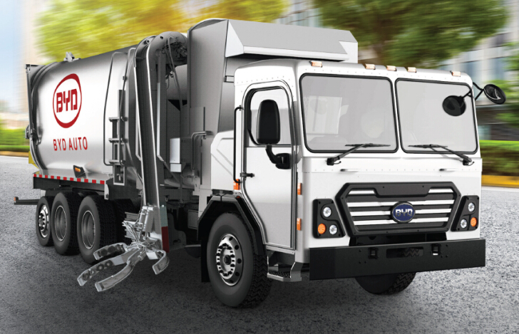 比亚迪亮相北美首台纯电动环卫卡车 并交付首台铰链式大巴