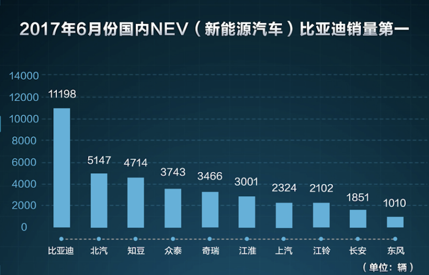近日,乘联会发布了最新一期中国新能源乘用车的销量数据,随着新能源汽车市场逐渐回暖,比亚迪以11198辆的单月销量过万的成绩蝉联了6月新能源销量第一。更以34634辆的成绩获得2017年上半年新能源汽车市场销量的冠军。