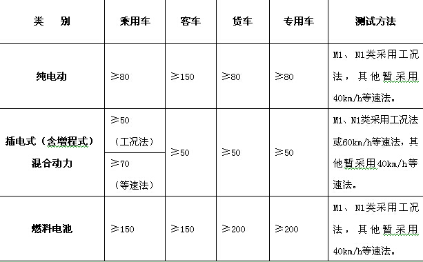 注:1.超级电容、钛酸锂快充纯电动客车无纯电动续驶里程要求。