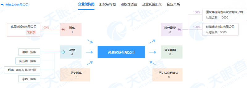 而重庆弗迪电池研究院有限公司的法定代表人何龙,又是深圳市比亚迪锂电池有限公司、商洛比亚迪实业有限公司以及青海比亚迪锂电池有限公司等公司的法定代表人。其于1999年7月加入比亚迪实业,历任第一事业部、第二事业部品质部经理,第二事业部副总经理,佛山市金辉高科光电材料有限公司副董事长,现任比亚迪股份有限公司副总裁、第二事业部总经理,并担任西藏日喀则扎布耶锂业高科技有限公司董事及比亚迪慈善基金会理事。