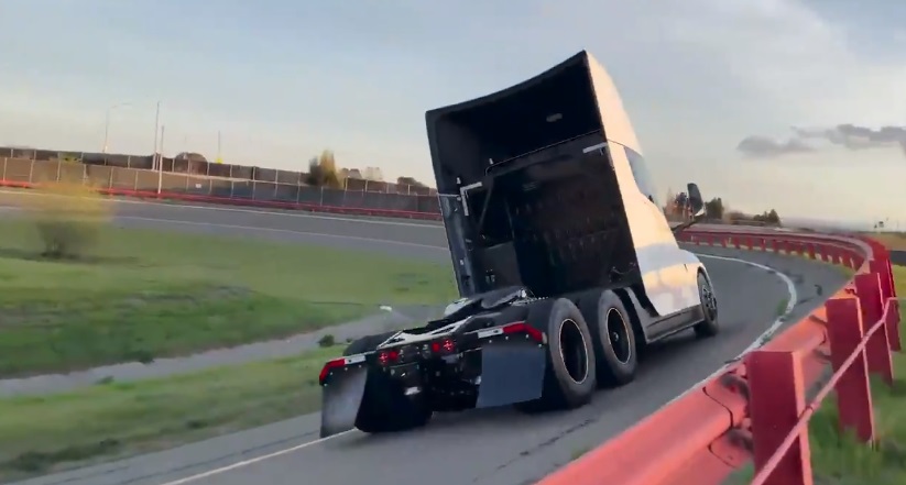 【EV视界报道】3月16日,EV视界从外媒获悉,特斯拉公布了首款纯电动半挂卡车Semi的路测视频。这款原型车在封闭环形跑道进行驾驶,甚至还挂着牌照。