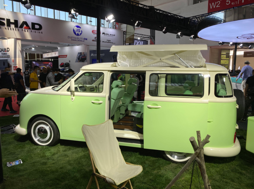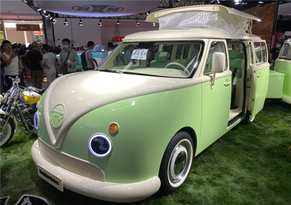 外观方面,新车采用了类似于大众 T1的复古设计,双色车身搭配圆形大灯以及镀铬凸面轮圈可以说完美的复刻了后者。