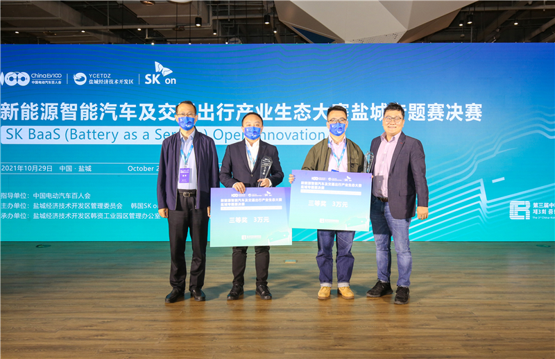 10月29日,新能源智能汽车及交通出行产业生态大赛——动力电池即服务专题赛决赛在盐城圆满落幕。本次活动由中国电动汽车百人会指导,盐城经济技术开发区管理委员会与SK on株式会社主办,盐城经济技术开发区韩资工业园区管理办公室、卡睿互联全球新能源与智能汽车创新中心、动力电池全生命周期联合创新中心共同承办。