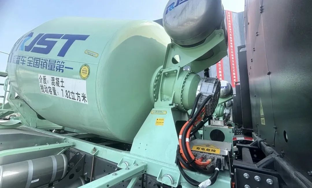 和传统燃油车辆相比,新能源搅拌车的动力来源和动力形式都发生了巨大的变化,尤其是在上装部分,——燃油搅拌车大多使用液压传动装置,从发动机分流一部分动力维持搅拌罐转动;而在新能源时代,则需要使用驱动电机将电能转化为机械能,保证搅拌罐的持续作业能力。