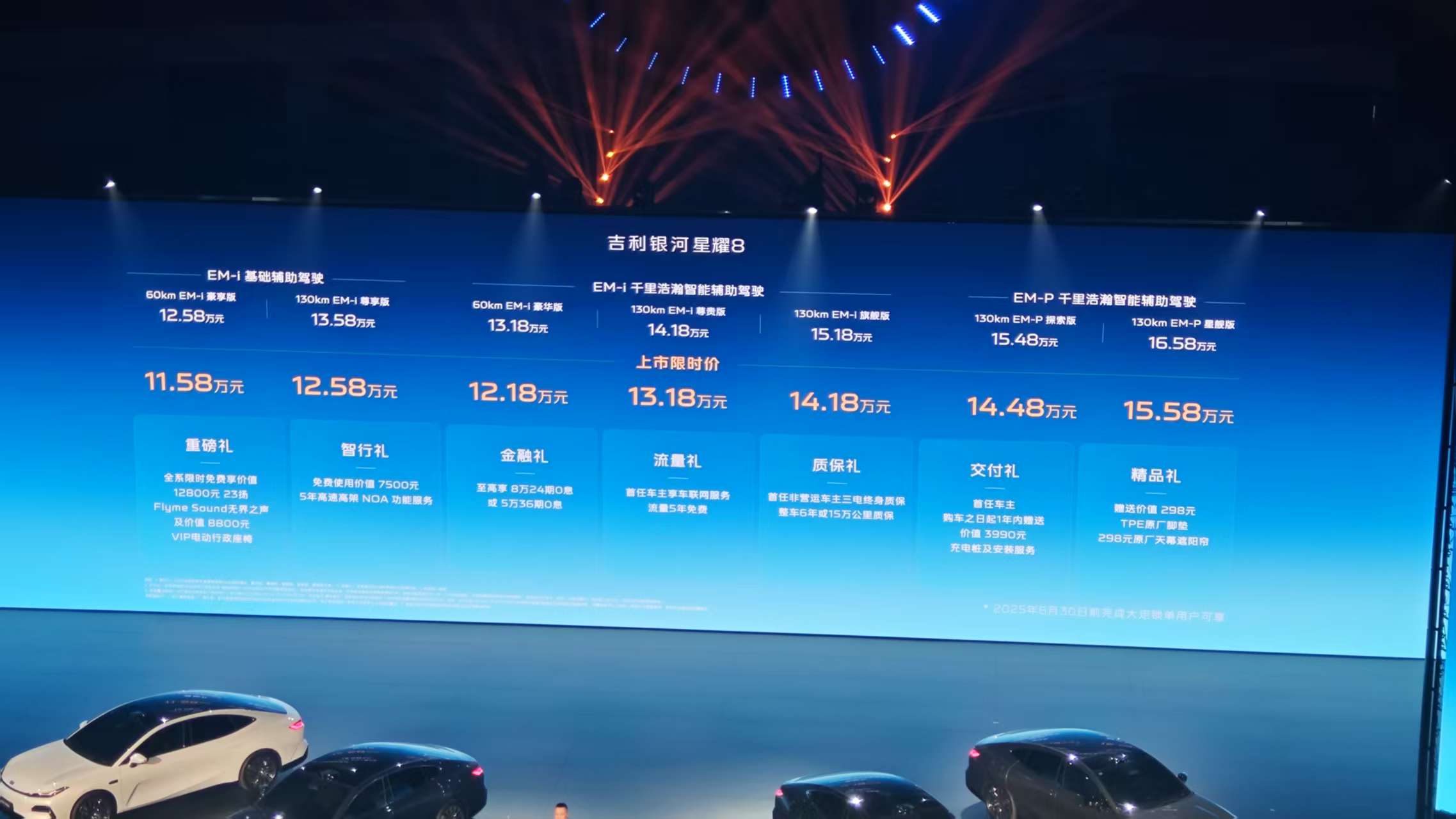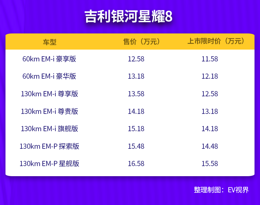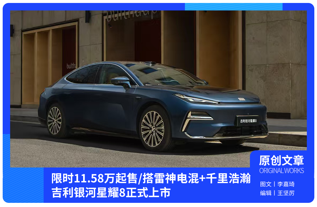 5月9日,吉利银河星耀8正式上市,共推出7款车型,售价区间为12.58-16.58万元,上市限时价11.58-15.58万元。新车采用了当下流行的轿跑车设计风格,并且将会搭载搭载雷神超级电混系统以及千里浩瀚智能安全辅助驾驶系统。