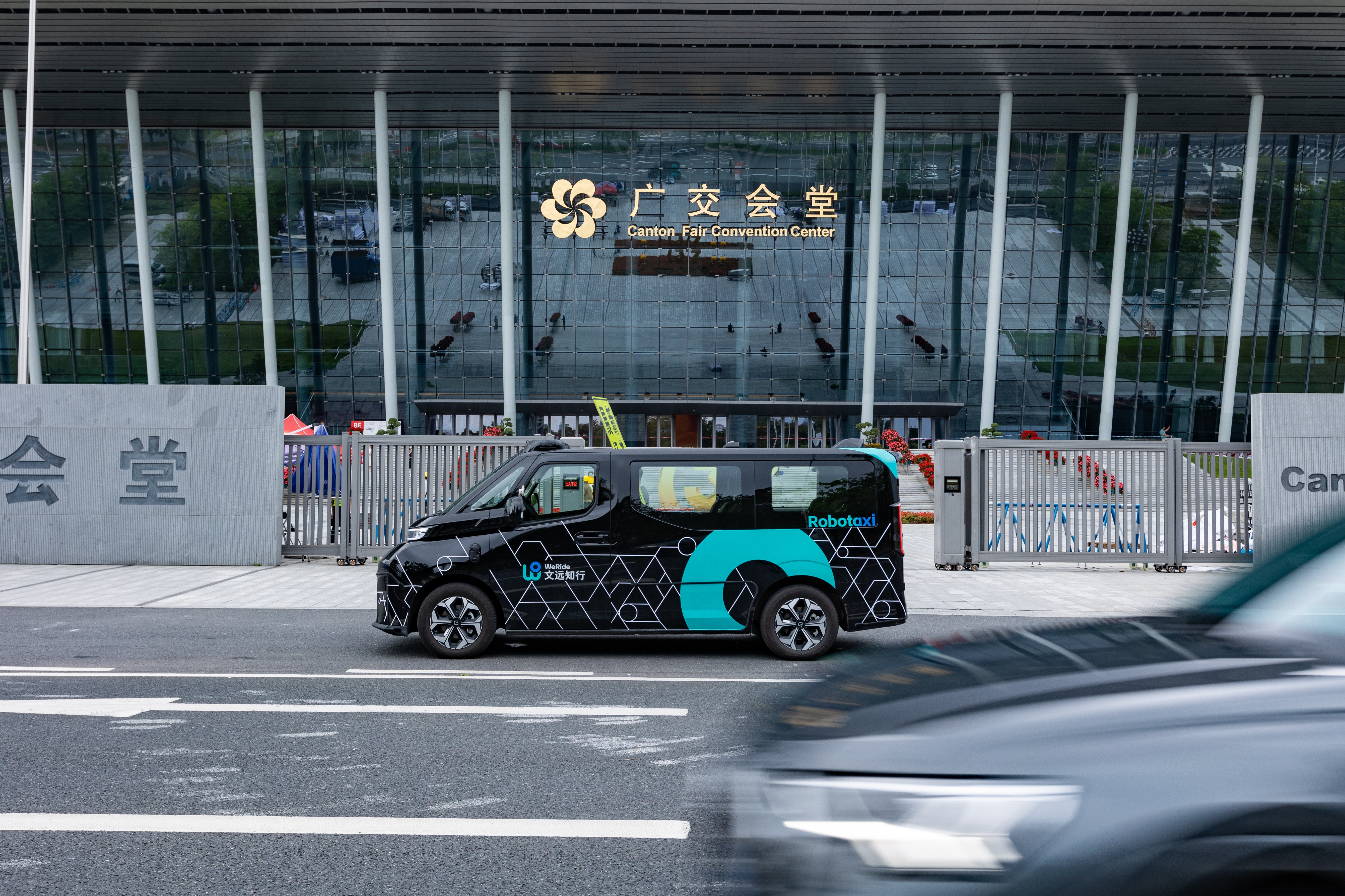 文远知行自动驾驶出行服务车辆在广交会展馆