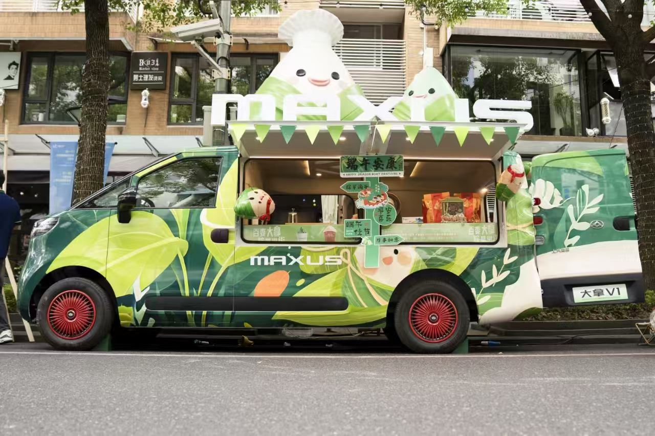 当传统佳节邂逅新能源创富浪潮,上汽大通MAXUS为申城市民送上节日惊喜。5月31日,纯电智慧轻客大拿V1化身“粽子车”,亮相上海杨浦大学路步行街,以“百变大拿·粽装出街”为主题,打造了一场融合端午文化、创业灵感与福利狂欢的沉浸式市集体验。这是继上海车展上以霸王茶姬为主题的“摩登餐车”造型引发广泛关注后,“创富神器”大拿V1再次突破传统模式,化身为一辆会“包粽子”的移动创富空间。活动现场,参与者不仅可以免费领取福利、亲手制作端午香囊,还能通过合影并晒出话题赢取神秘好礼,更有机会报名成为一日摊主,参与餐车的后续改造计划。