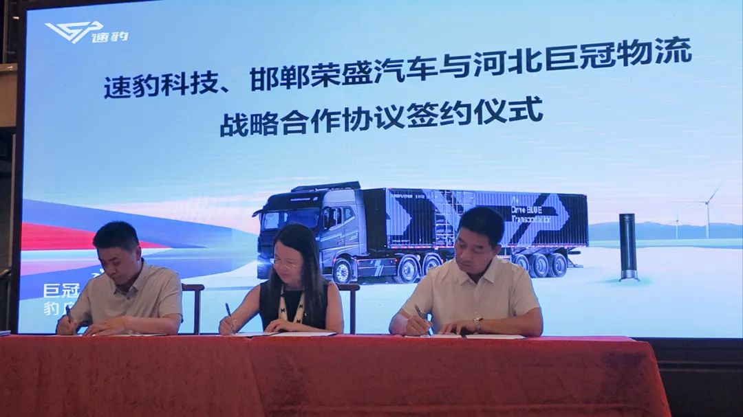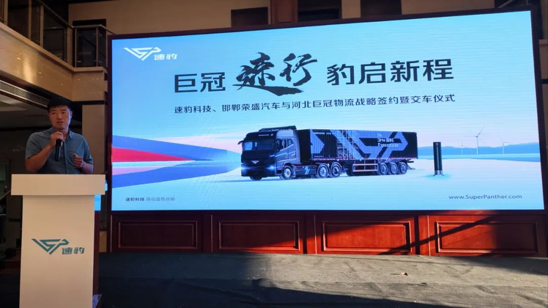 2025年6月16日,速豹科技、邯郸荣盛汽车与河北巨冠物流战略签约暨交车仪式在“钢城”河北邯郸成功举行。本次交付不仅是速豹对新能源重卡运输场景的全新解锁,更展现了三方勠力同心、共同推动华北地区物流行业低碳化、智能化升级的决心,携手开启绿电智慧物流新篇章。