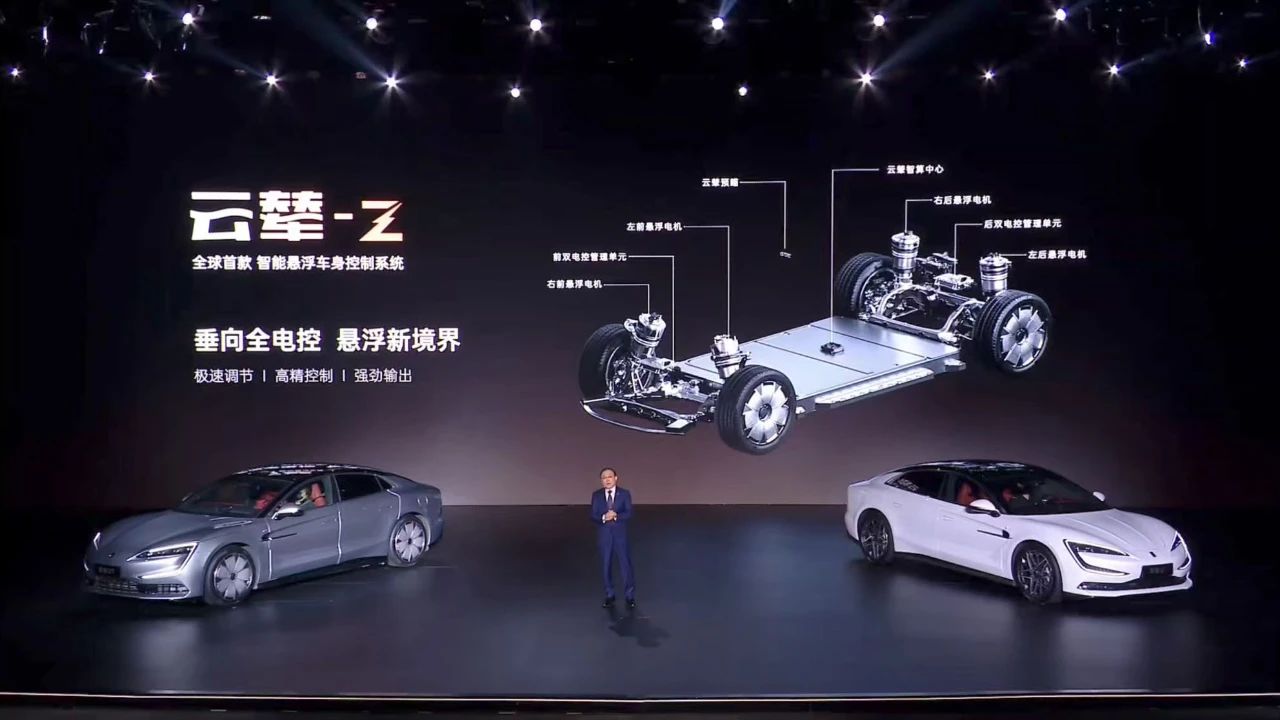 这款车最核心的突破,是搭载了云辇-Z系统,被称为“三电系统之外的第四电”。传统汽车的“三电” 指电池、电机、电控,解决的是“能跑、能跑远、能跑稳”的问题;而云辇-Z系统则把底盘变成了“智能执行终端”,通过车身姿态控制、路面预判、能耗优化,重新定义了“驾驶体验”。