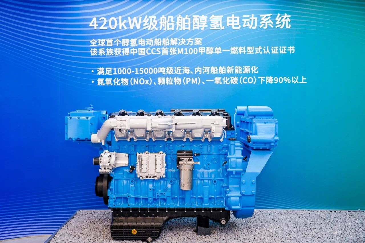 航运业碳排放约占全球总排放量的 3%,尽管碳减排进程不断提速,但仍面临巨大挑战。远程打造的醇氢电动系统船舶解决方案,拥有绿色、高效、节能、无里程焦虑等优势,并获得中国船级社首张M100单燃料船用发动机型式认可证书,成为新能源船舶最佳解决方案。本次展出的远程420kW级船舶醇氢电动系统覆盖1000-15000级船型,相比纯电动续航更长、购置更低,并可享受政策补贴,是实现近海、江河、湖泊的船用驱动电动化的中国特色解决方案。