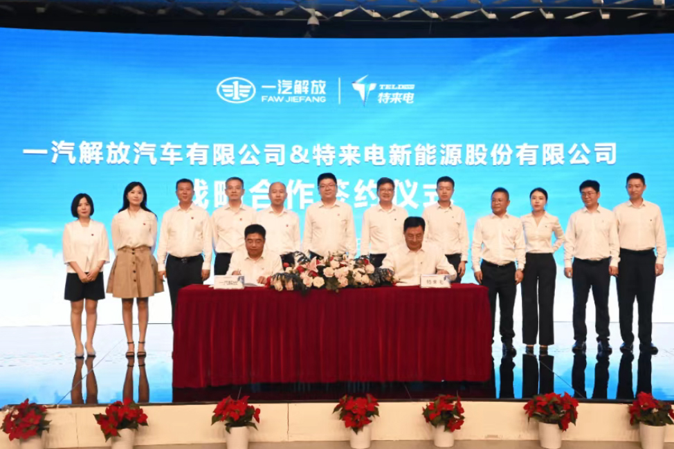 2025年7月22日,一汽解放汽车有限公司(简称“一汽解放”)与特来电新能源股份有限公司(简称“特来电”)正式签署深化战略合作协议。双方将共同致力于新能源生态共建及产业协同,聚焦新能源商用车充电网络全球化布局,加速推动全球交通运输行业绿色低碳转型发展。一汽解放董事长、党委书记李胜,特锐德特来电董事长于德翔出席签约仪式。