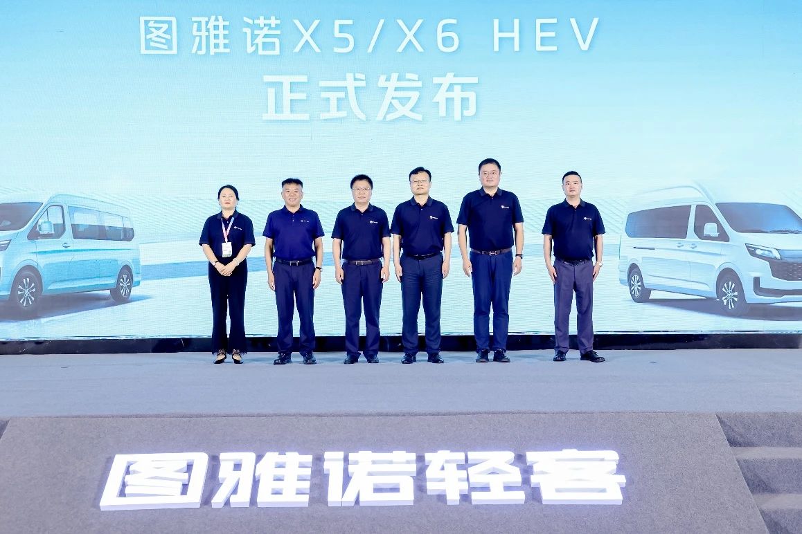 会议期间,图雅诺X5/X6 HEV新品正式发布。该产品凝聚前沿技术与创新理念,以创新架构、油电混动、智能切换、功能升级为支点,一并攻克油耗、动力、续航、环保等难题,实现从运输工具到全能伙伴的全方位升级,覆盖多能兼用、商旅客运、改装定制多场景,为用户提供“平、安、多、省”的用车体验。