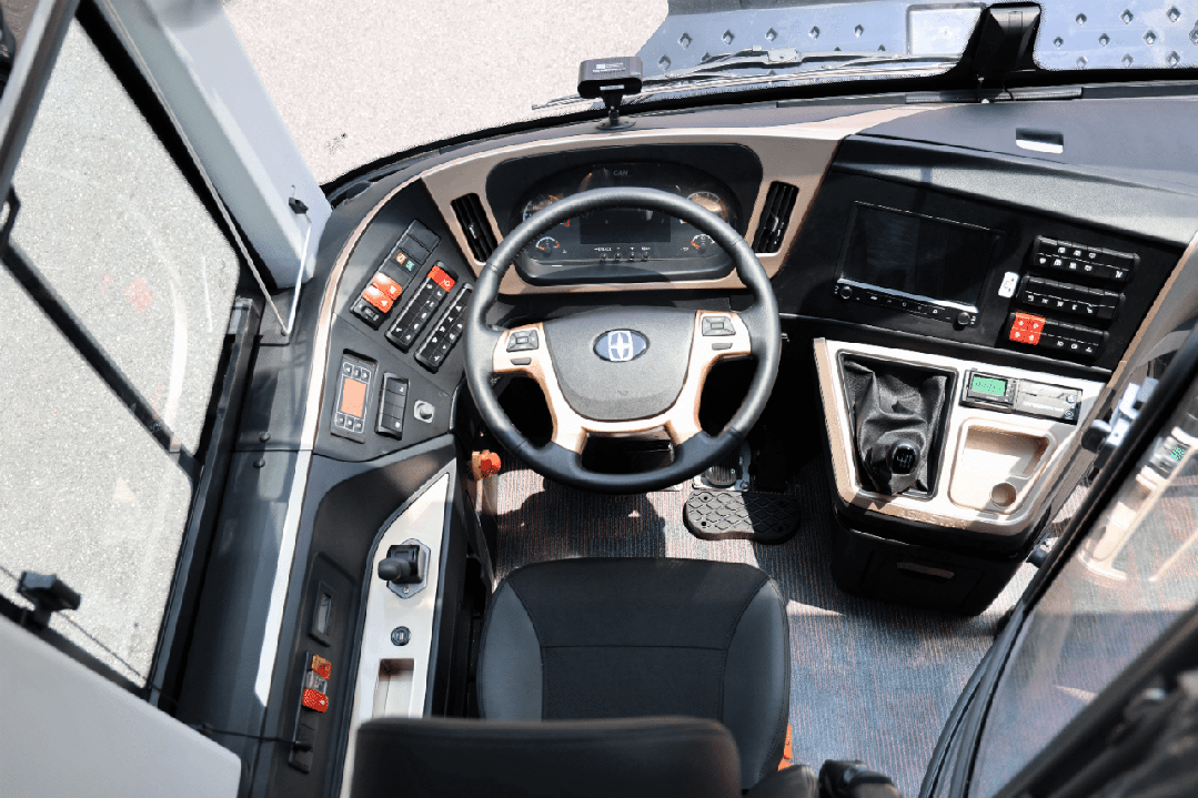 驾驶舱多功能方向盘,操作顺手且便捷,智能系统实时监测车况,为安全运营与高效调度提供支撑,让驾驶更从容。乘客区采用半卧商务座椅+腿托板设计,旅行中可灵活切换坐姿,缓解疲劳;座椅配备USB充电接口,满足移动设备续航需求。全景车窗+柔和内饰照明,营造通透、惬意的乘坐氛围。