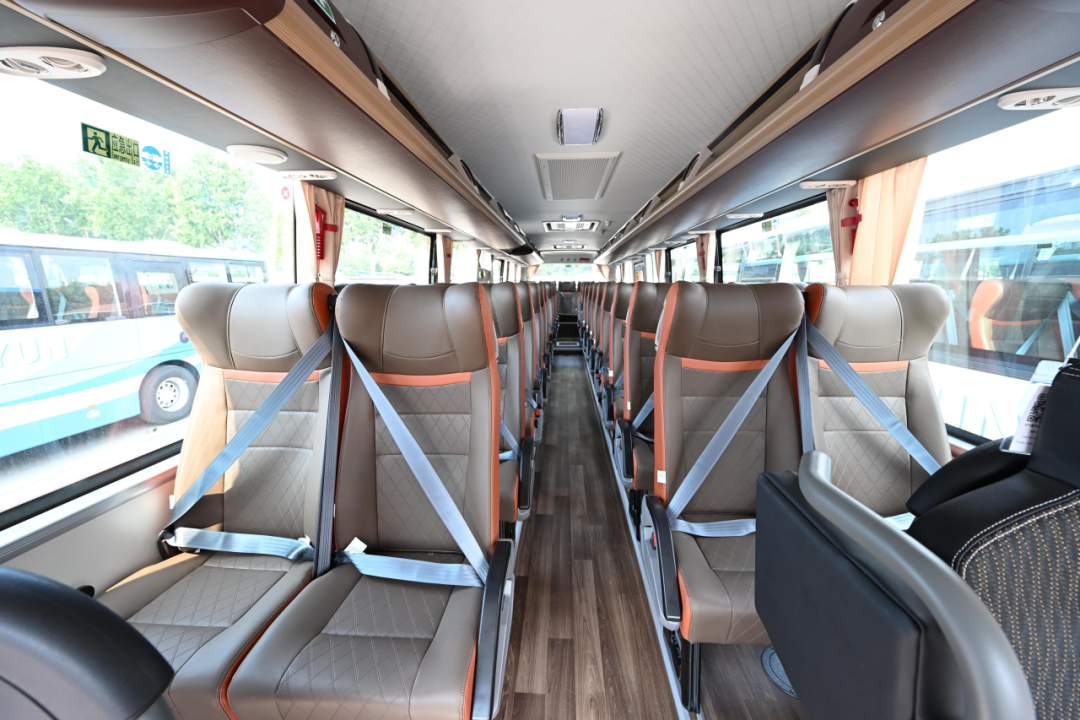 动力性能上,车辆搭载宁德时代176.04kWh磷酸铁锂电池,搭配松芝冷暖空调支持远程智能控温,续航里程长,节能效果显著,运营高效省心。在安全方面,BJ6117配备了ABS+ESC、前后双盘制动、胎压监测及报警、多路监控、车身安全门等,为乘客筑起一道坚固的安全屏障。